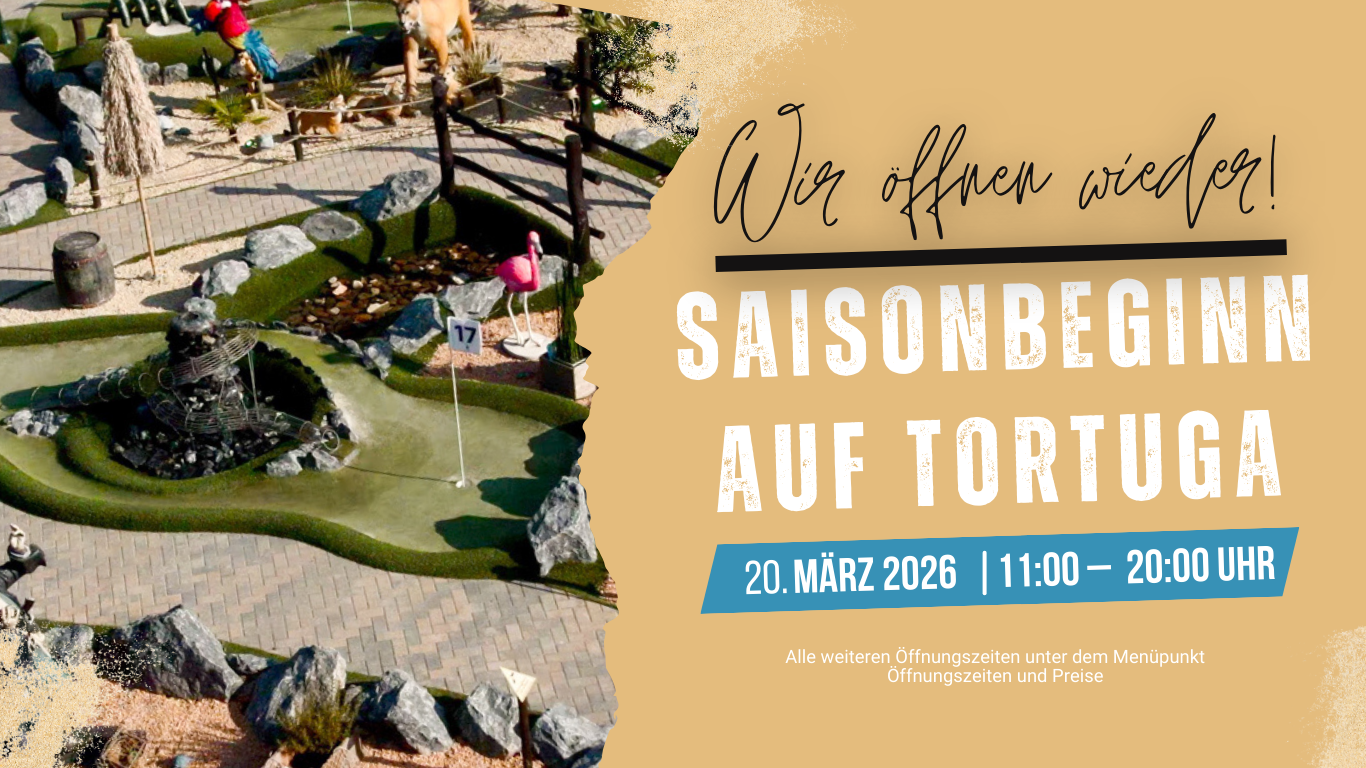 Ab Mitte März 2026 begrüßen wir euch bei Tortuga Adventure Golf in Nettetal! Unsere regulären Öffnungszeiten sind: