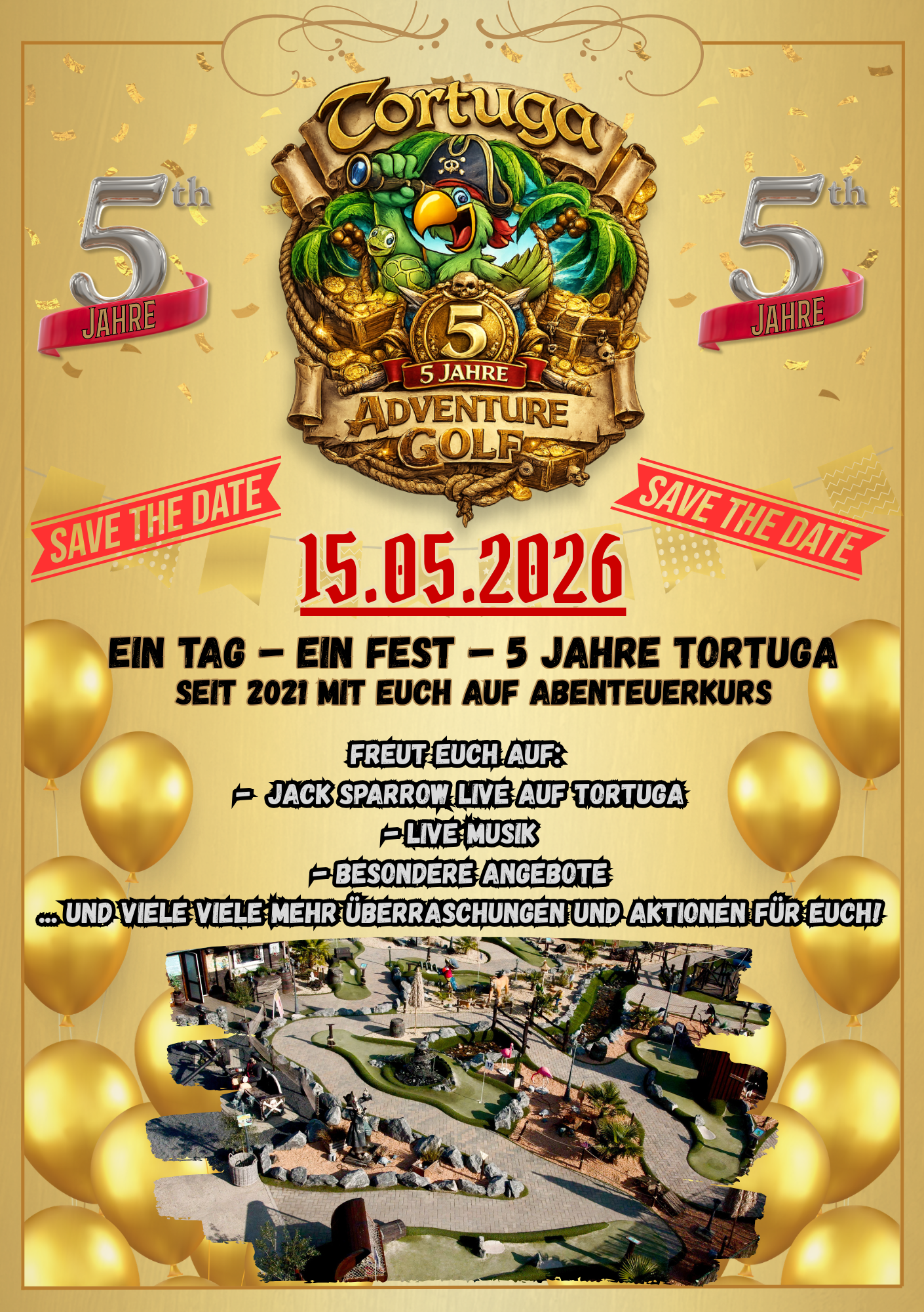 Zum 5-jährigen Jubiläum verwandelt sich Tortuga in eine große Festkulisse voller Highlights, Überraschungen und besonderer Erlebnisse. Freut euch auf Live-Musik, einen ganz besonderen Piraten-Gast, exklusive Jubiläumsaktionen und viele kleine Details, die diesen Tag unvergesslich machen.