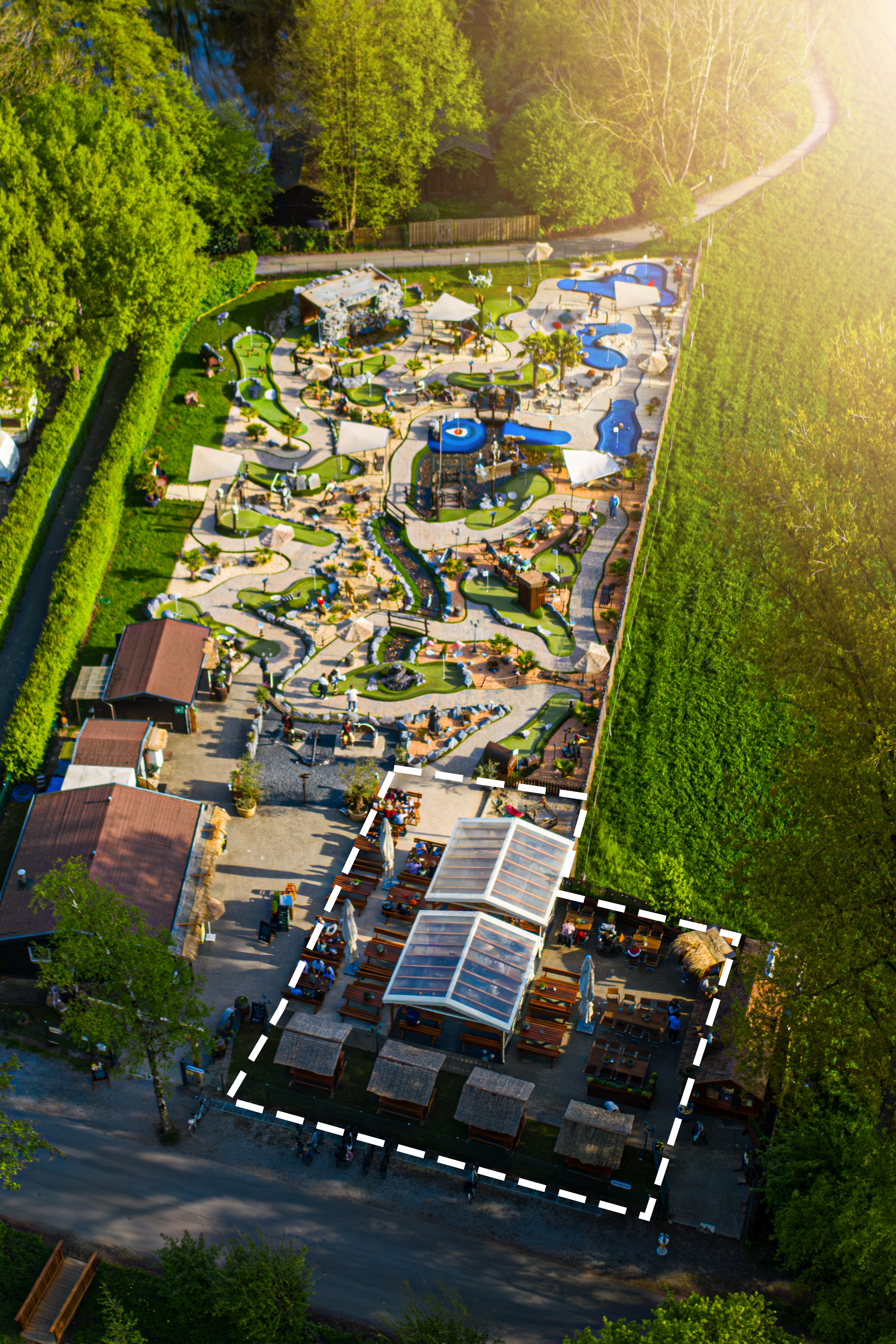 Geniet van ontspannende momenten op ons zonnedek, de biertuin bij Tortuga Adventure Golf. Voor of na je avontuur op de minigolfbaan - hier kun je jezelf trakteren op koele drankjes, warm eten en een gezellige sfeer.